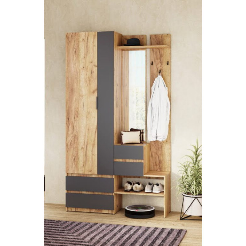 Передпокій «Персей» — зручне та практичне рішення для організації простору в коридорі або передпокої. Компактна конструкція дозволяє раціонально використовувати площу та забезпечує зручне зберігання верхнього одягу, взуття й аксесуарів.