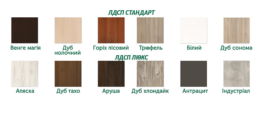 Переваги: економія простору, міцний фасад із ДСП, надійні петлі, сучасний дизайн, довговічність.